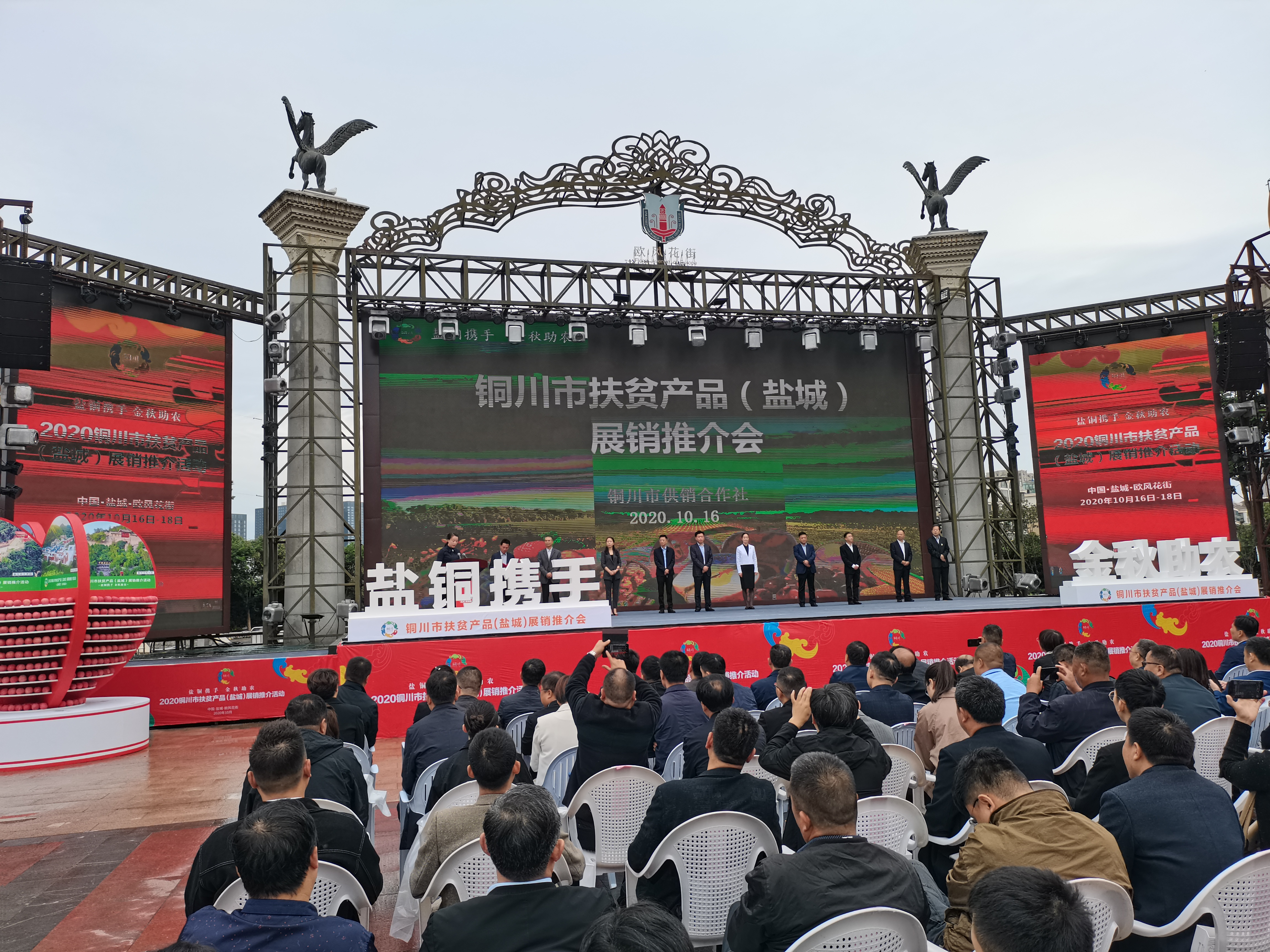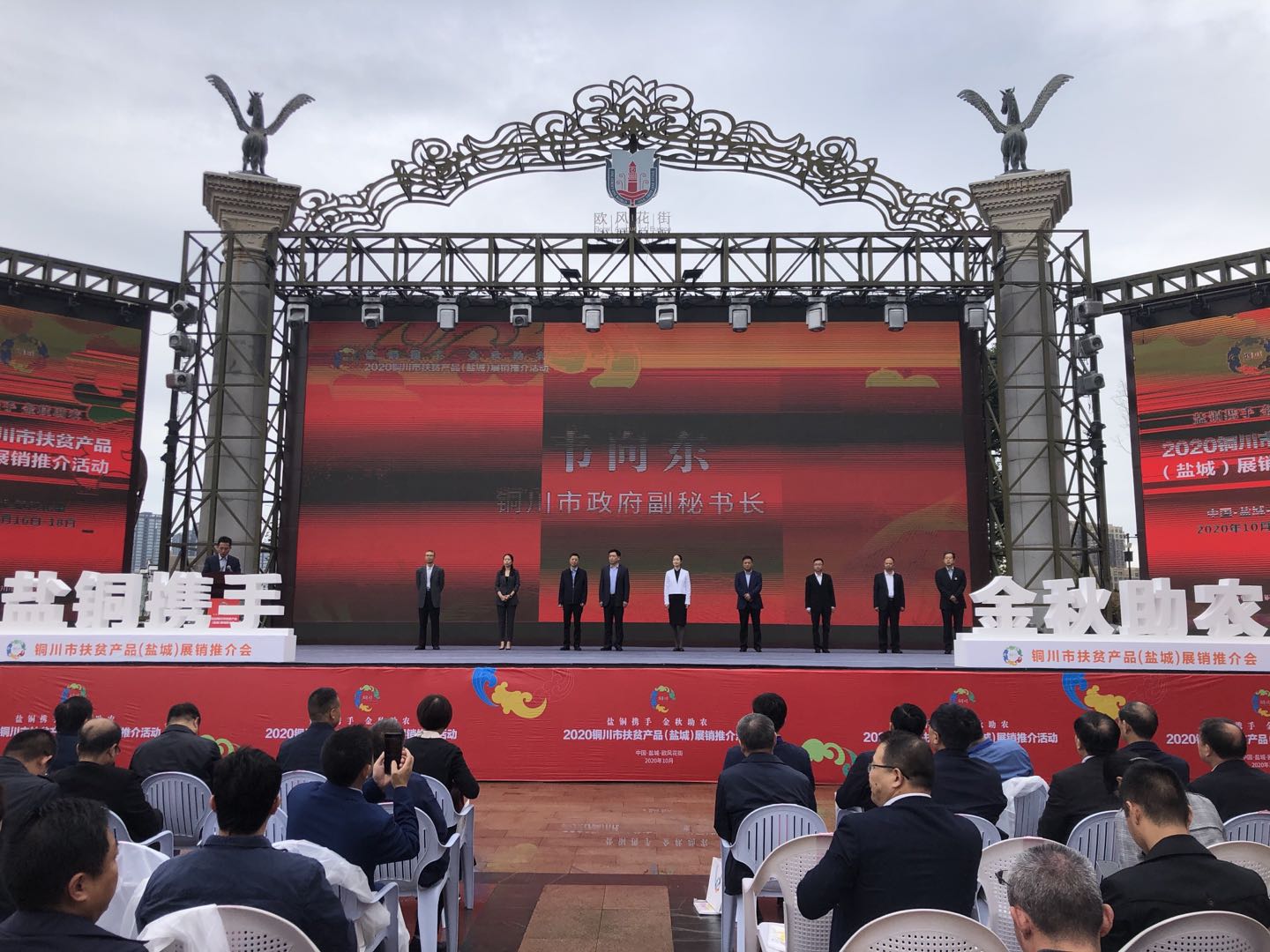 盐铜携手,金秋助农。10月16日,2020铜川市扶贫产品(盐城)展销推介活动在市区聚龙湖畔举行。市委常委、常务副市长羊维达出席活动并致辞,铜川市委常委、副市长陈小艳参加开幕仪式。